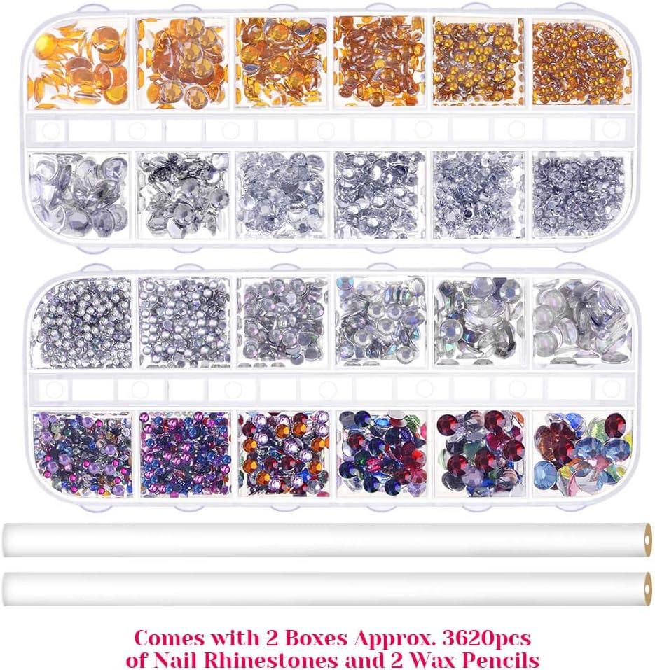 【GREAT VALUE SET】Anezus nail art accessories comes with 2 boxes approx. 3620pcs of nail rhinestones in different sizes and colors and 2 wax pens which is a nail design kit for DIY projects and nail art decoration