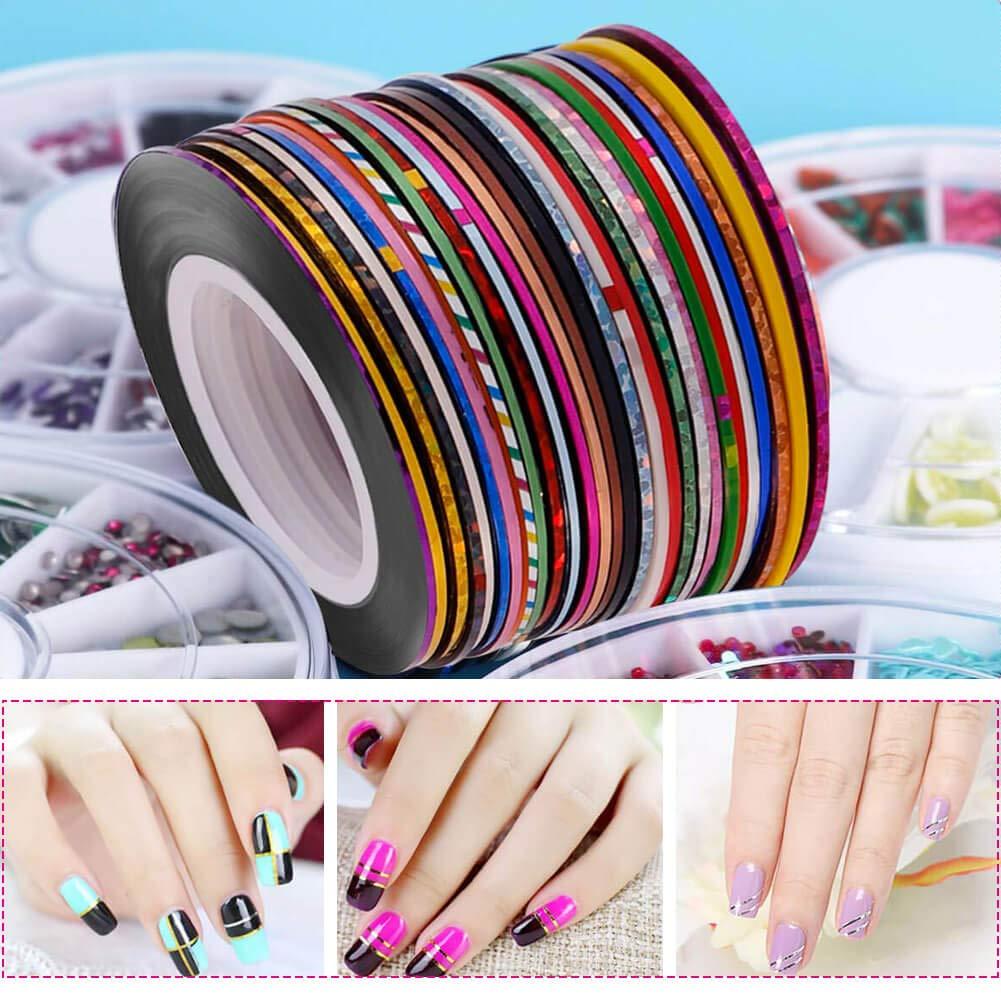 【NAIL ART STRIPING TAPE】30 assorted colors nail art striping tape with rich colors and come with adhesive, easy to paste. Can be used with UV gel / acrylic nails / nail polish etc.