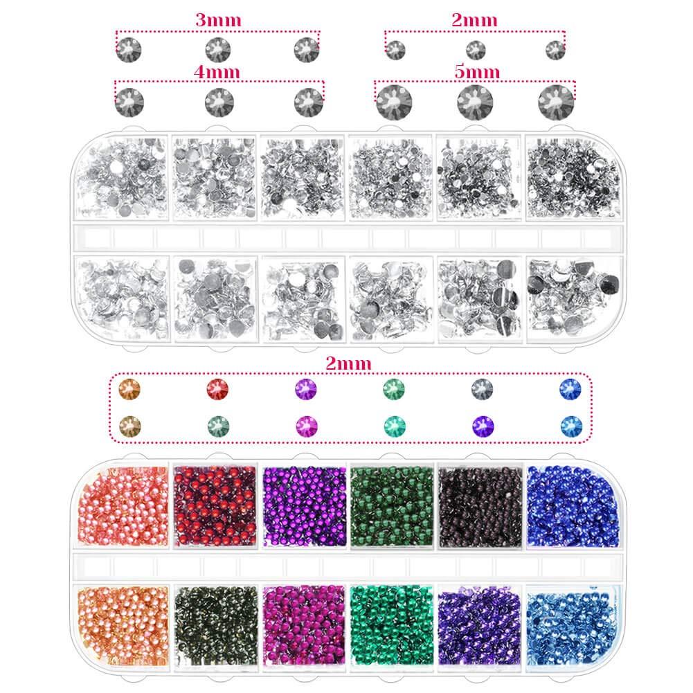 【NAIL ART SUPPLIES】Anezus nail art supplies kit comes a box of 2400 pcs 2 mm nail gems in assorted colors and a box of 2300 pcs clear nail rhinestones in assorted sizes. A must have nail art supplies for professional nail enthusiasts and beginners