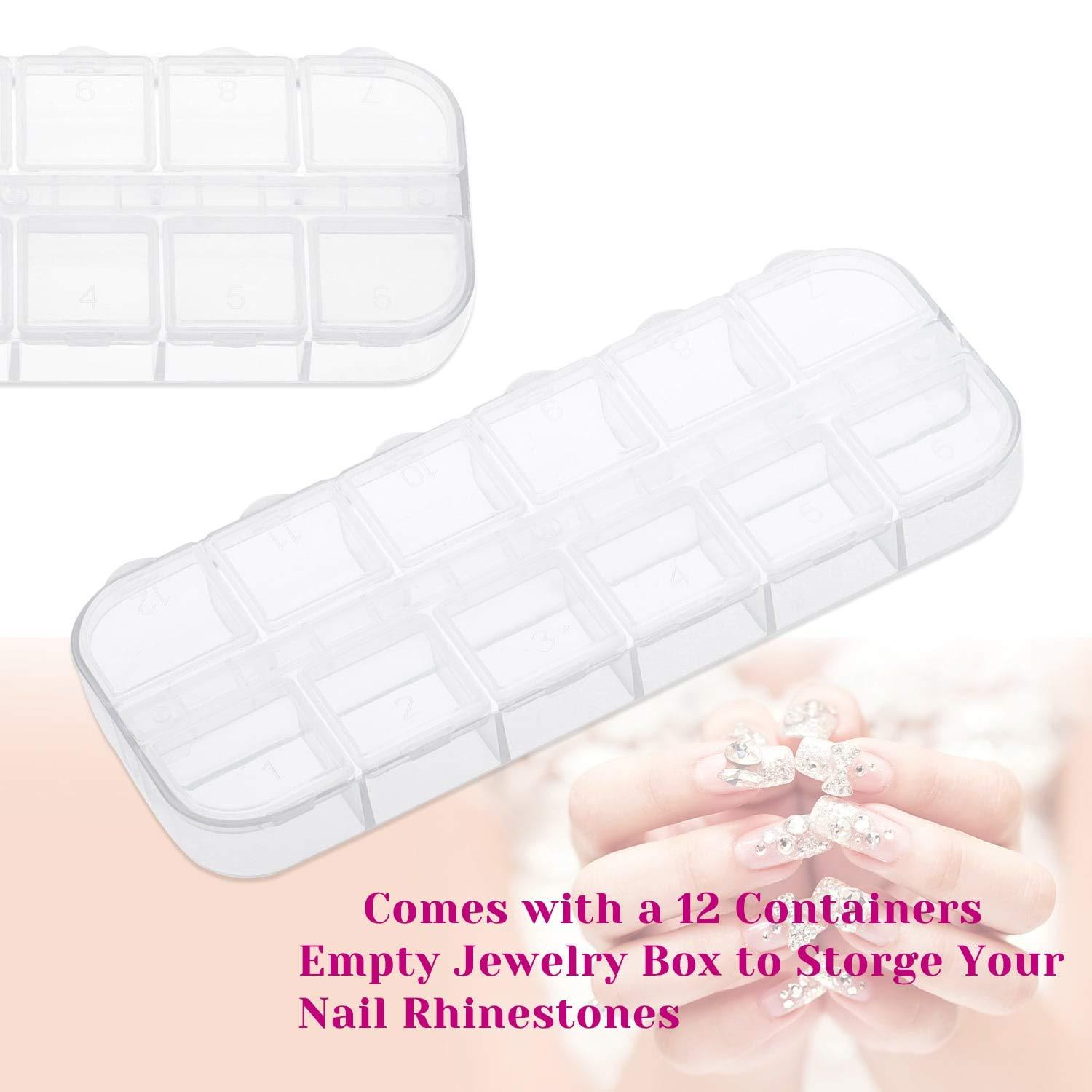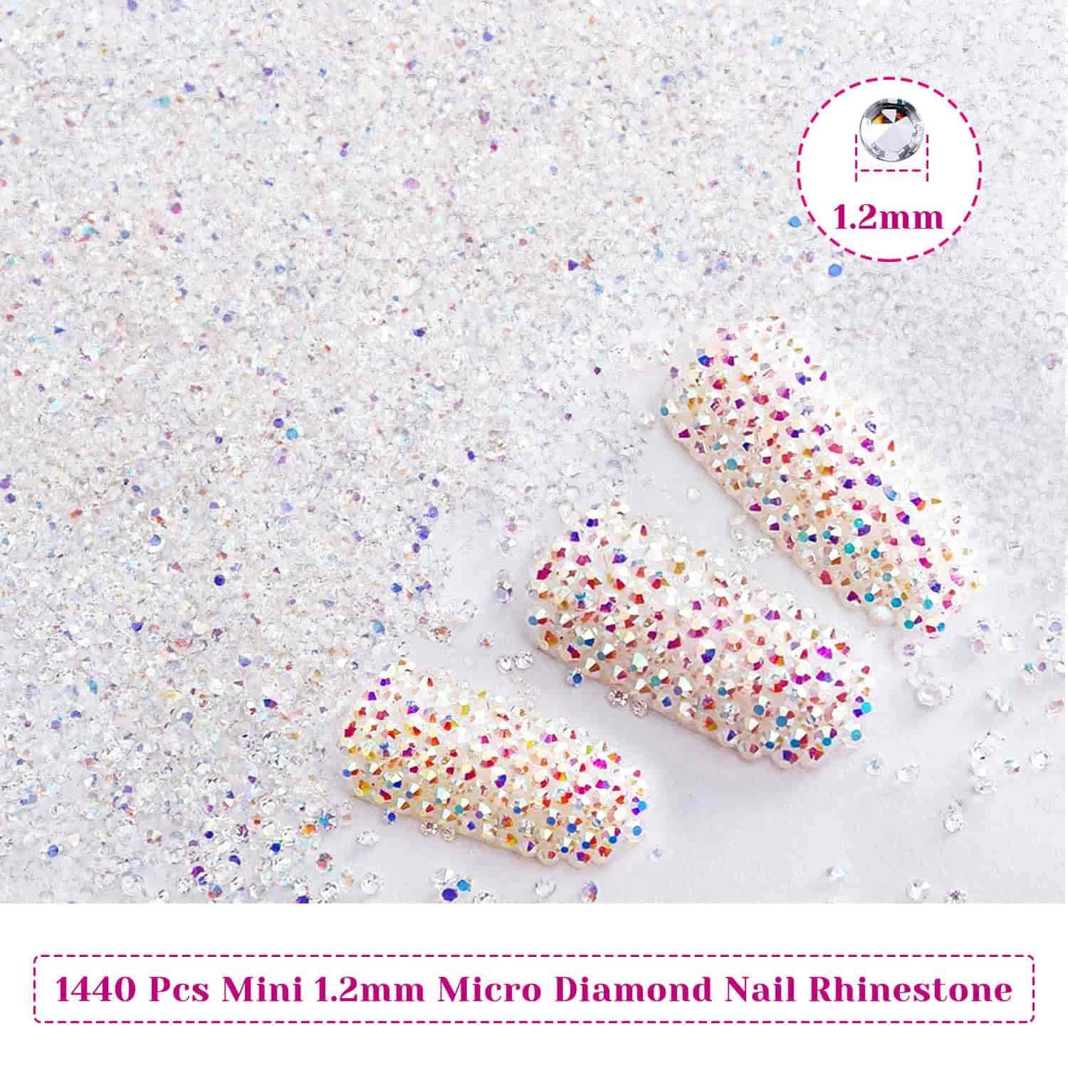 【GREAT VALUE RHINESTONES SET】Anezus 3268pcs nail rhinestones set includes a bag of 1728pcs flat back rhinestones in six different sizes, a bag of 1440pcs 1.2mm ultra mini crystal iridescent AB rhinestones, 100pcs larger ab rhinestones in 10 different shapes and a clear handy box for your storage